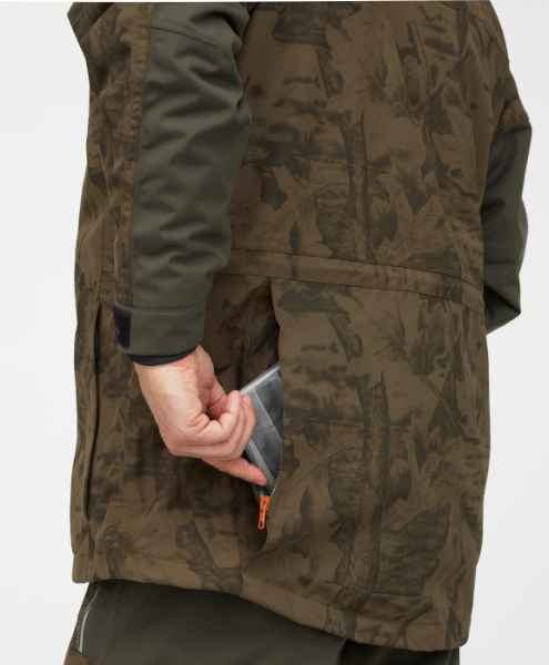 Prodloužená zadní část je spojena se širokým kapsou sloužícím při turistice např. na mapy, lehký spacák. V extrémní zimě, při nízké pohybové aktivitě zase slouží k vložení např. thermo podušky. Šířku bundy si velmi jednoduše přizpůsobujete podle potřeby, na spodní části a v oblasti pasu je aplikováno jednodotykové stahování.