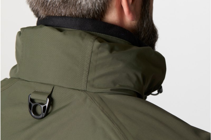 - 7. Kapuci lze odepnout od límce a může být upravena v obvodu/viditelnosti a hloubce. Kapuce má stínítko a může být zabalená - schovaná do límce.