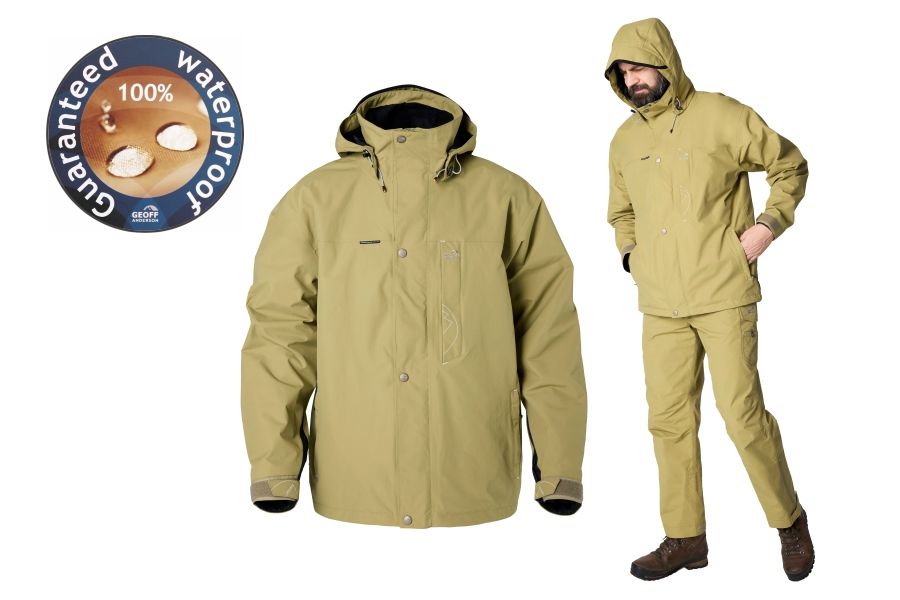 Nepromokavý a větru odolný set od Geoffu Anderson Dozer + Urus Basis vás udrží v suchu v každém počasí.