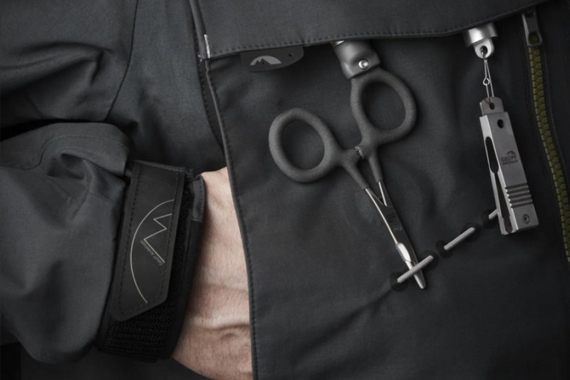 Magnety a nářadí: Naleznete zde mnoho různých možností jak uchytit rybářské nářadí. Bunda WS Pro disponuje dvěma magnetami o nosnosti 4kg (možnost rozšíření až na čtyři magnety). Magnety jsou umístěny vpředu s možností uchycení vašeho oblíbeného nářadí. Integrované elastické šňůrky a skryté magnety udržují nářadí během rybolovu poblíž bundy. Magnety můžete podle potřeby přesouvat z jednoho místa na druhé, aby byly vaše nástroje snadno dostupné. V levé náprsní kapse se nachází šňůrka na cívce, rybářské "jojo". Vysoko na zadní straně bundy naleznete D-kroužek pro zavěšení podběráku.