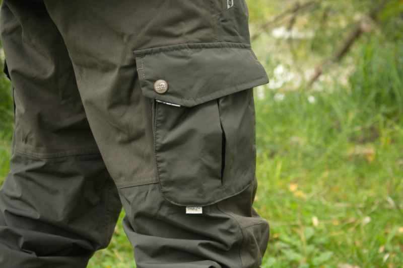 Praktické kapsy na bocích rybářských nohavic Urus 6 ™ jsou svým střihem automaticky při zavření chráněny před deštěm, sněhem a větrem. Svým speciálním tvarem jsou vhodné i na větší rybářské potřeby, rybářské krabičky bez pocitu zátěže a následného rizika vypadnutí. Samozřejmostí u bočních kapes je všité pouzdro na mobilní telefon. (Jen v pravé kapse).