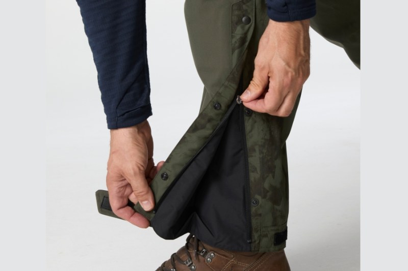 - Až 35cm spodní boční otevírací voděodolný zip na vysokou obuv. Kalhota se rozšíří na navlečení obuvi.