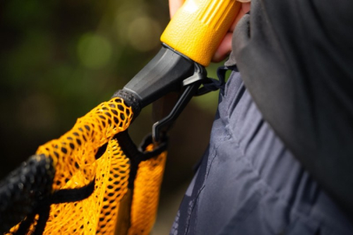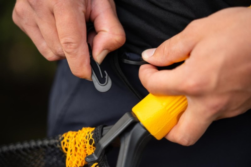 Podběrák je vybaven praktickým háčkem a pevnou šňůrkou. Můžete jej jednoduše připnout na očko brodících kalhot, na rybářskou vestu nebo batoh, takže vám nezavadí při nahazování, ale je okamžitě dostupný.