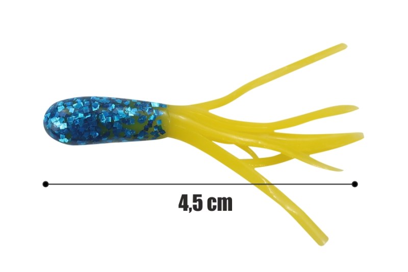 Malá silikonová dutá návnada ve tvaru chobotnice v různých barevných kombinacích. Nástraha lze zatížit vložením průběžné olověné olivky. Používá se na ultralehkou,lehkou přívlač,drop shot a lov menších dravců - pstruh, okoun, jelec, candát.