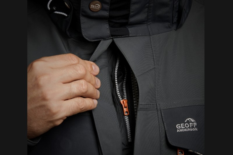 Špičková bunda Geoff Anderson střední délky ideální pro přívlač nebo muškaření. Nepromokavý materiál s odolností proti větru a bez omezování v pohybu.